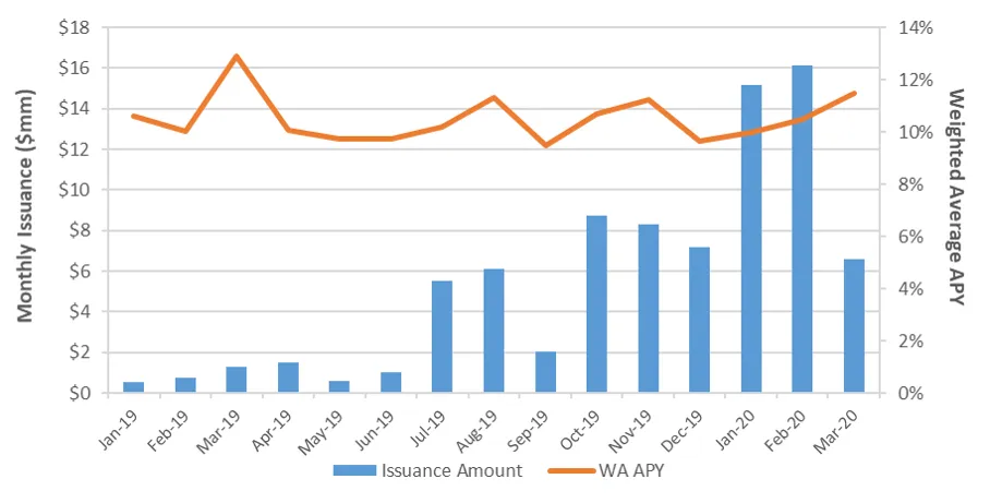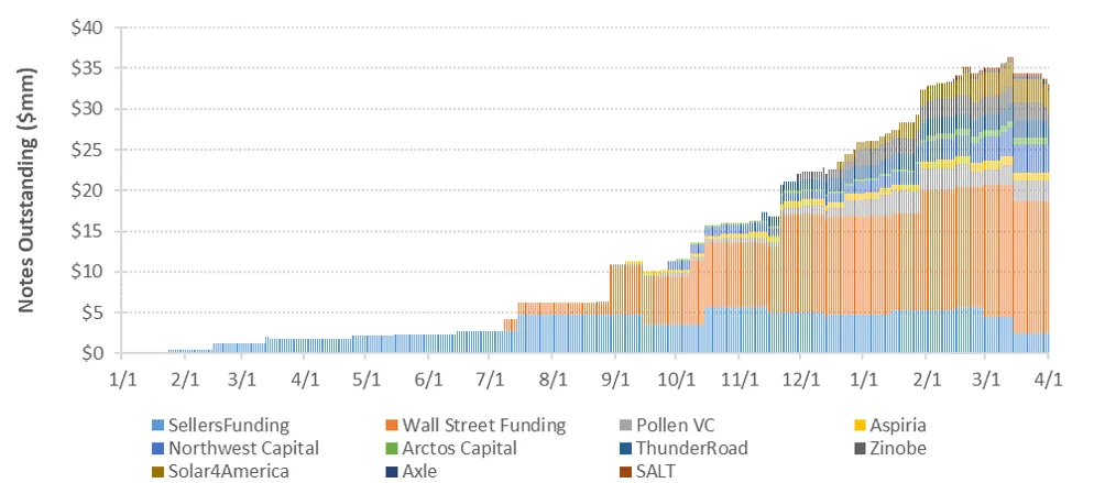 March was a month that presented many unprecedented challenges to global markets and the investor community given the impacts of COVID-19. Despite record levels of volatility, STNP issuance continued, although at reduced volumes compared to our record-setting February metrics. As of April 1st, a total of $33.0mm of notes were outstanding following $6.6mm in March issuance against $7.9mm in note maturities or prepayments.