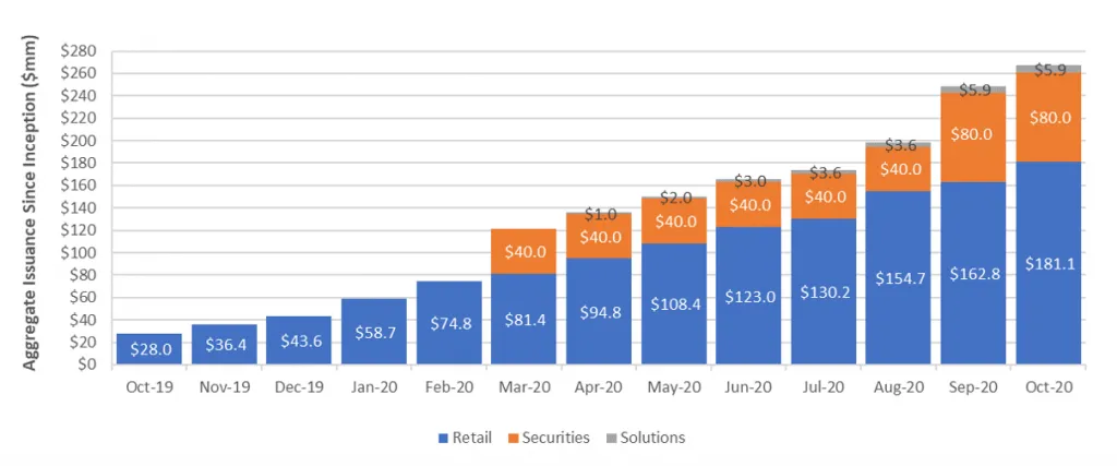 - STNPs issued in October had a weighted average APY of ~12.4% (with no fees to investors) with average tenors hovering a little below the 140 days mark. This compares to a new issue weighted average APY for September of ~11.4%.