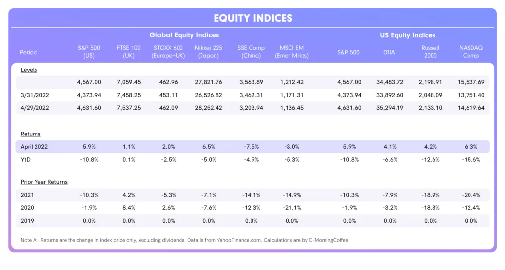 April was a hard month for bond and stock investors, with a confluence of factors weighing heavily on market sentiment. U.S. equity markets took the brunt of the global equity pain, with the tech-heavy NASDAQ index taking the worst beating.