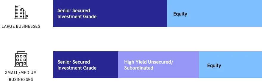 Since the high-yield market was public, the disclosure and process for issuing high-yield bonds was similar to that for selling shares (i.e. equity), governed by the SEC. The development of this market opened an important financing alternative for middle-market companies, which could now raise fixed-rate debt in the bond market that would often slot between senior secured bank financing and equity in a company’s capital structure. The high-yield market became an important financing vehicle for small- and middle-market growth companies that found banks too conservative and often unwilling to lend (or lend in the necessary amount), and equity investors too expensive.