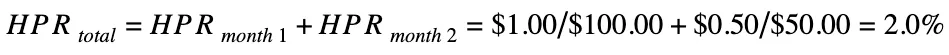 For example, consider the HPR on a 2 month $100 note that pays 1% per month and amortizes half the note amount after month 1. The HPR would be as follows: